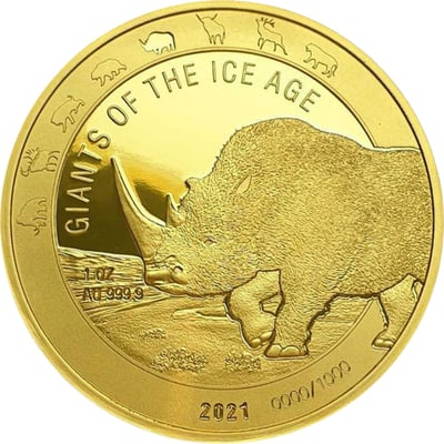 1 Unze Gold Giganten der Eiszeit – Wollhaarnashorn 2021 (Auflage: 1.000 | Polierte Platte)