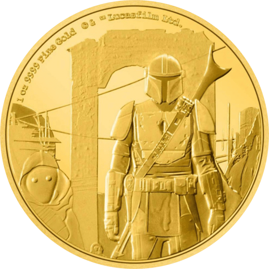 Die erste Münze der Serie ist dem Hauptprotagonisten gewidmet, dem Mandalorianer. Sein bürgerlicher Name ist eigentlich Din Djarin, er wird aber auch „Mando“ genannt. Fünf Jahre nach dem Untergang des Imperiums verdient er sein Geld als Kopfgeldjäger. Als er für einen seiner dubiosen Auftraggeber einen Fünfzigjährigen aufspüren soll, stellt sich später heraus, dass dieser von derselben Spezies wie der frühere Jedi-Meister Yoda ist und Grogu heißt. Der Mandalorianer entschließt sich, Grogu dem Auftraggeber wieder abzunehmen und zu beschützen – eine Entscheidung, die sein Leben in vielerlei Hinsicht nachhaltig verändert.
