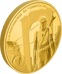 Die Münze wurde von der New Zealand Mint aus einer Unze 99,99% Gold in Polierter Platte geprägt. Das Motiv zeigt den furchtlosen mandalorianischen Krieger in seiner Beskar-Rüstung sowie einen Jawas Scavenger in seinem Kapuzengewand. Die Inschrift „1 oz 9999 Fine Gold“ und das Copyright sind ebenfalls im Münzdesign enthalten. Auf der Rückseite sind das Porträt von Königin Elizabeth II sowie die Inschriften „ELIZABETH II“, „NIUE“, „250 DOLLARS“ und „2021“ abgebildet.