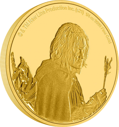Aragorn gilt als eine der herausragendsten Figuren der Herr der Ringe Triologie. Er führt erst die Frodo und die Hobbits, später die Gefährten Gimli und Legolas nach Mordor. Er spät entscheidet er sich sein Erbe als König Gondors zu akzeptieren und sein Schicksal zu erfüllen. Aragorn erfüllt alle Anforderungen, die das Publikum in der heutigen Zeit an einen Helden stellt. Mut, Selbstlosigkeit, Bescheidenheit. Die Münze selbst zeigt ihn als Waldläufer, während er einen Pfeil in der Hand hält. Herr der Ringe Münzen sind unter Sammlern sehr begehrt, zumal die Fangemeinde riesig ist – ein echter Garant für eine Wertsteigerung.