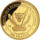 Die Rückseite zeigt das Wappen der Demokratischen Republik Kongo. Das Wappen zeigt einen Leopardenkopf. Links davon befindet sich ein Elefantenstoßzahn, rechts davon ein Speer. Als Untergrund dient ein Stein. Die französische Devise JUSTICE (Gerechtigkeit), PAIX (Frieden) und TRAVAIL (Arbeit) sind ebenfalls Teil des Wappens. Daneben befindet sich in aufgeteilter Schreibweise der Jahrgang 2022. Auf der Rückseite befindet sich die Gewichtsangabe von 5 Unzen 999,9er Feingold. Am unteren Rand der Münze sehen Sie den Nennwert von 500 Francs.