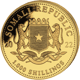 Die Wertseite der Goldmünze zeigt das Wappen Somalias, das am 10. Oktober 1956 angenommen wurde. Das Herkunftsland dieser Münze ist nämlich die Bundesrepublik Somalia.