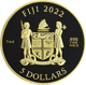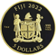 Die Rückseite der Münze ist mit dem Wappen Fidschis geprägt sowie mit dem Nennwert der Münze (5 Dollar), der Stückelung (1 Unze) und der Feinheit (999).
