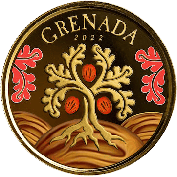 Über dem Baum steht das Prägejahr der Münze. Dieses lautet 2022. Darüber steht zudem der Name Grenada