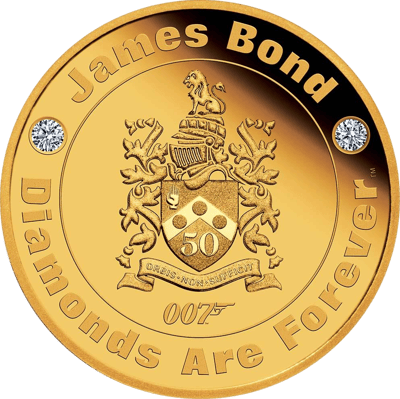 Der weltweit wohl bekannteste Geheimagent, James Bond 007, feiert sein 50. Jubiläumsjahr, und die Perth Mint Australia ehrt ihn mit einer eigenen Jubiläumsausgabe. Den Auftakt der erfolgreichen Reihe um James Bond, den Agenten mit der „Lizenz zum Töten“, bildete der Film „James Bond – 007 jagt Dr. No™“ im Jahr 1962. Damals verkörperte der attraktive Schauspieler Sean Connery den Geheimagenten. In den darauffolgenden 50 Jahren wurden viele weitere actionreiche Abenteuer in Anlehnung an die fantastischen Werke von Ian Fleming verfilmt. Dabei schlüpfen insgesamt sechs einzigartige Darsteller in die Rolle des MI6-Agenten. Im aufregenden siebten Film der James-Bond-Serie aus dem Jahr 1971 jagte er Ernst Stavro Blofeld, den Boss von SPECTRE, der einzigartige Diamanten hortet, um damit eine mächtige Laserwaffe im Weltraum zu betreiben. Der von Sean Connery verkörperte Bond muss den riesigen Satelliten außer Gefecht setzen und gleichzeitig Blofeld daran hindern, seinen beängstigenden Plan in die Tat umzusetzen. Bis heute begeistert die Filmreihe Zuschauer jeden Alters auf der ganzen Welt.