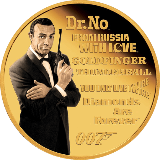 Der wohl weltweit berühmteste Geheimagent, James Bond 007, feiert sein 60. Jubiläumsjahr und die Perth Mint würdigt ihm eine eigene Goldmünze. Den Auftakt der erfolgreichen Reihe rund um James Bond, den Geheimagenten mit der „Lizenz zum Töten“, machte der Film „James Bond – 007 jagt Dr. No™“ im Jahr 1962. Damals verkörperte der attraktive Schauspieler Sean Connery den Geheimagenten. Basierend auf dem gleichnamigen Roman von Ian Fleming aus dem Jahr 1958 versucht Bond die Ermordung vom MI6 Mitarbeiter John Strangways und seiner Sekretärin aufzuklären. Der von Sean Connery verkörperte 007 findet dabei eine Spur, die zusammen mit Felix Leiter und Quarrel nach Jamaika und zu dem geheimnisvollen Dr. No führt. In den darauffolgenden 60 Jahren wurden 24 weitere actionreiche Abenteuer in Anlehnung an die traumhaften Werke von Ian Fleming verfilmt. Bis heute begeistert die Filmreihe Zuschauer in allen Altersklassen auf der ganzen Welt. Mit dieser Münze erfüllen sich alle James Bond Fans einen wahrhaft schönen, limitierten Traum und erhalten eine exklusive Sammlermünze, die es so nie wieder geben wird.