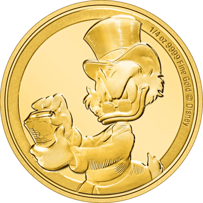 Noch nie hat eine Serie weltweit so ein großes Ansehen erlebt, wie die Dagobert Duck Reihe. Und jetzt wird dieser Erfolg durch eine faszinierende 1/4 Unze Gold 75 Jahre Scrooge MCDuck 2022 Münze geehrt. Mit ihrer limitierten Auflage von nur 250 Stück und dem exklusiven Jubiläumsjahr von Scrooge MCDuck, wurde die wertvolle Münze in der Prägestätte der New Zealand Mint produziert. Die unnachahmliche Goldmünze, wird Sie und alle Dagobert Duck-Liebhaber überzeugen. Außerdem wurde die neuseeländische Münze mit einer aufregenden Geschichte versehen und glänzt mit ihrer polierten Platte. Eine perfekte Sammlermünze für viele Gold-Liebhaber, die genau wissen, was sie wollen. Die exklusive 1/4 Unze Gold 75 Jahre Scrooge MCDuck 2022 Münze ist eine wunderschöne Münze, die durch ein außergewöhnliches Herstellungsverfahren produziert wurde und weltweit mit ihrer Begehrtheit blüht.