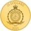 Unter dem Motiv sind diverse Angaben eingraviert: die Stückelung der Münze (1 Unze) und die Feinheit. Die Münze besteht zu 99,99 % aus hochwertigem Gold