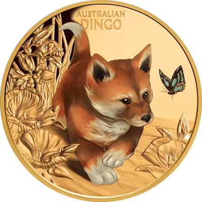 Numismatisches Kunstwerk: Coloriertes Design mit einem Baby Dingo, geprägt in Polierter Platte von B.H. Mayer