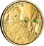 Die "1 Unze Gold Ghana Alien 2023" ist mehr als eine gewöhnliche Goldmünze; sie ist ein Kunstwerk, das die Grenzen unserer Welt überschreitet. Geprägt von der angesehenen Scottsdale Mint in den USA, zeigt diese exklusive Münze auf der Vorderseite zwei detailreich gestaltete Aliens, deren grüne colorierte Augen im Dunkeln leuchten und so das Herz jedes Sammlers höher schlagen lassen. Das einzigartige Design, das an eine futuristische Raumkapsel erinnert, wird ergänzt durch einen intergalaktischen Hintergrund, der ein Raumschiff und einen fremden Planeten zeigt.