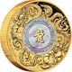 Das Motiv dieser einzigartigen Münze zeigt zwei majestätische Drachen, die vor einem kunstvollen Wolkenhintergrund dargestellt sind. Diese Fabelwesen umrahmen ein kunstvoll geschnitztes Stück Perlmutt, das eine dreidimensionale Darstellung des chinesischen Schriftzeichens für „Drache“ zeigt. Die Detailtiefe und Präzision des Designs sind atemberaubend und machen diese Münze zu einem wahren Kunstwerk.