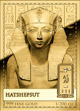• Motiv: Zehn eindrucksvolle Porträts bedeutender ägyptischer Herrscher, kunstvoll in Gold geprägt und von authentischen Hieroglyphen umrahmt