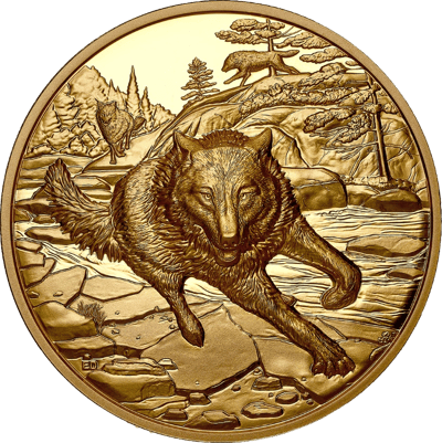 Meisterwerk der Royal Canadian Mint: Höchste Prägequalität "Polierte Platte" mit faszinierendem Grauwolf-Motiv vereint reinstes 999,9er Gold mit numismatischer Perfektion