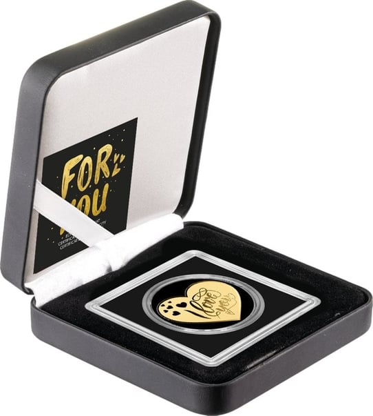 - Motiv: Die außergewöhnliche Herzform verleiht dieser Goldmünze eine romantische Ausstrahlung, während der kunstvolle "I Love You"-Schriftzug gemeinsam mit den zarten Herzsymbolen eine zeitlose Liebesbotschaft vermittelt.