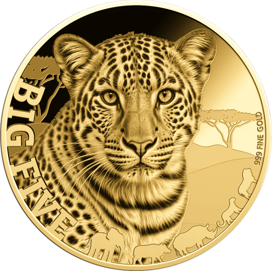 Majestätische Leopard-Goldmünze aus 999er Feingold der begehrten Big Five Serie