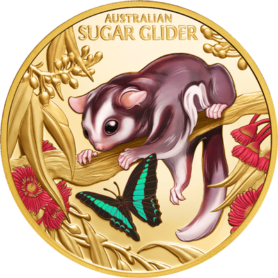 Tauchen Sie ein in die faszinierende Welt der australischen Tierwelt! Diese außergewöhnliche Goldmünze präsentiert einen der niedlichsten Bewohner des australischen Kontinents – den Sugar Glider. Mit einer Auflage von nur 99 Stück weltweit gehört diese Münze zu den seltensten Prägungen, die jemals erschienen sind.