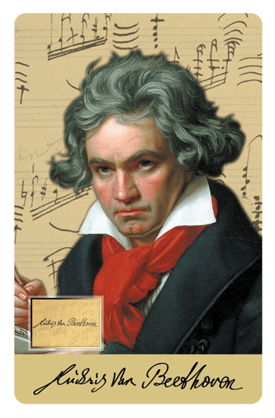 - Motiv: Detailreiches Portrait des legendären Komponisten Ludwig van Beethoven vor historischen Notenblättern