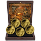 Die prachtvolle Holzkassette mit dem handgemalten Outback-Panorama auf der Innenseite des Deckels – Koalas, Kängurus, Kookaburra, Emu und Quokka vor einem glühenden australischen Sonnenuntergang – macht dieses Set auch optisch zu einem absoluten Highlight in jeder Sammlung. Hier stimmt einfach alles: vom ersten Eindruck beim Öffnen bis zum letzten Detail auf der kleinsten Münze.