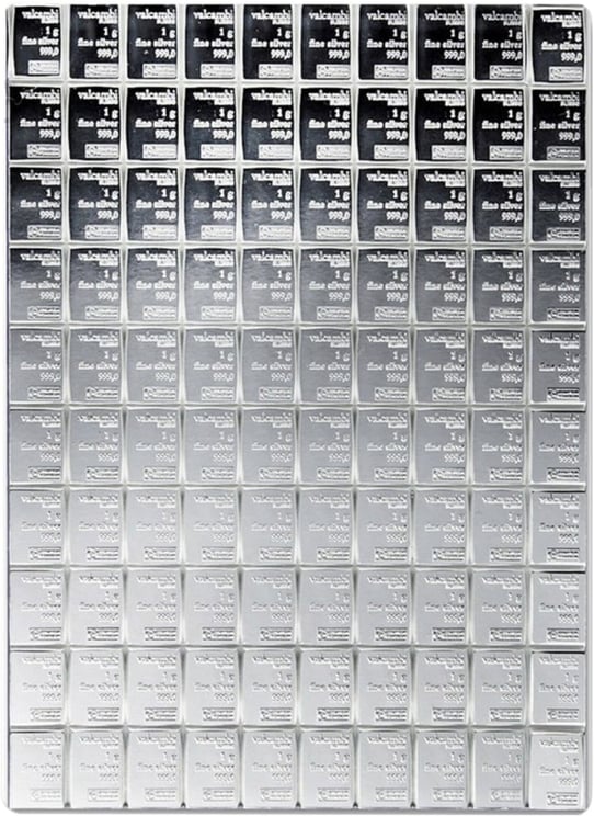 Das Set besteht aus 10 Tafelbarren à 100g, wobei jeder Barren aus 100 einzelnen 1g Silberbarren besteht. Diese können durch perfekte Sollbruchstellen einfach und verlustfrei in exakte Einzelbarren aufgeteilt werden. Dies bietet eine unglaubliche Flexibilität beim Wiederverkauf. Man muss nicht den ganzen Barren auf einmal verkaufen, sondern kann immer gerade so viel abtrennen wie man gerade benötigt.