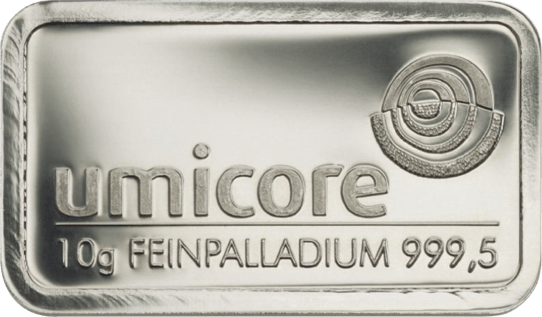 Top-Investment: 10g Palladiumbarren von renommierten Herstellern wie Umicore, Heraeus und Degussa als zukunftsträchtige Kapitalanlage