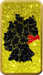 Der 1 Unze Silberbarren Sachsen wurde von Heimerle & Meule gefertigt und in Deutschland nachträglich kunstvoll veredelt. Die Vorderseite des Barrens zeigt die Deutschlandfahne, verziert mit verschiedenem Diamantpulver in Schwarz, Rot und Gold, sowie das mittig platzierte Wappen von Sachsen. Die Rückseite präsentiert eine Deutschlandkarte, auf der das Bundesland Sachsen rot hervorgehoben ist. Auch hier kommen die glitzernden Diamantpulver in Schwarz, Rot und Gold eindrucksvoll zur Geltung.