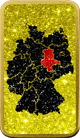 Dieser beeindruckende Silberbarren kombiniert die Eleganz von Feinsilber mit der Pracht einer teilvergoldeten Oberfläche. Die Vorderseite zeigt die Deutschlandfahne, verziert mit Diamantpulver in den Farben Schwarz, Rot und Gold. Besonders hervorzuheben ist das mittig platzierte Wappen von Sachsen-Anhalt, das durch seine detaillierte Darstellung besticht. Die Rückseite zeigt eine Deutschlandkarte, auf der das Bundesland rot hervorgehoben wurde. Auch hier wurde Diamantpulver in den Farben Schwarz, Rot und Gold verwendet, was dem Barren einen glitzernden und schimmernden Effekt verleiht.