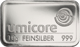 Das abgebildete Exemplar zeigt einen Umicore-Barren in seiner ganzen Eleganz: Die rechteckige Form mit sanft abgerundeten Ecken, die makellos glänzende Oberfläche und die gestochen scharfe Prägung zeugen von höchster Handwerkskunst. Der Schriftzug „umicore" thront über der Gewichts- und Feinheitsangabe, flankiert vom unverwechselbaren konzentrischen Kreislogo des belgischen Traditionsunternehmens.