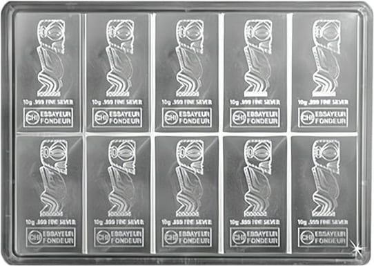Auf der Suche nach einer höheren Investition führt der Weg für viele Investoren nicht an 10x 10g Silber CombiBars vorbei. Dabei handelt es sich um 10g Kleinstbarren in Silber, die in Form einer patentierten CombiBarren Platte gefertigt werden. Sobald Sie einen oder mehrere der Silberbarren verschenken, verkaufen oder tauschen möchten, brechen Sie die gewünschte Anzahl einfach ab. In der Fertigung überzeugen die CombiBars aus dem Hause Valcambi SA vor allem durch die Wahrung technisch höchster Ansprüche. Die Barren sind in Tafelform in zwei Reihen und fünf Spalten angelegt.