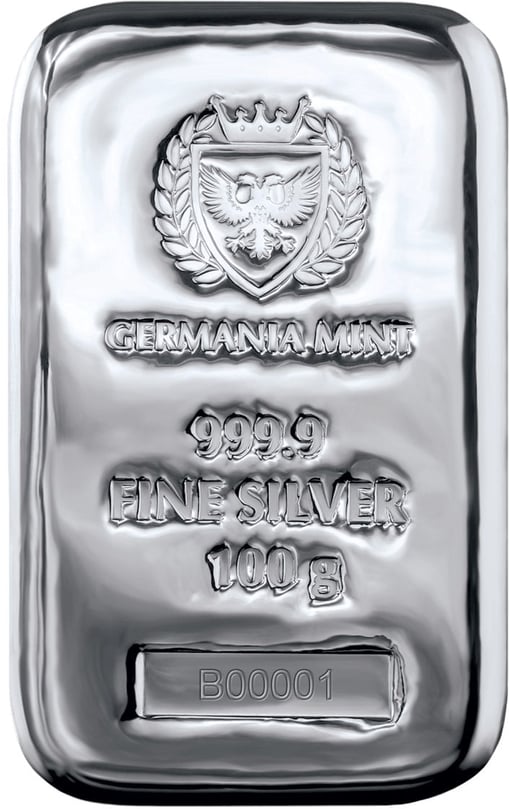 Wenn es um den Erhalt von Kaufkraft und die Absicherung gegen die schleichende Gefahr der Inflation geht, ist die Anlage in physisches Silber eine bewährte Strategie. Der 100g Silberbarren der renommierten Germania Mint ist hierfür eine exzellente Wahl. Dieser Barren ist nicht nur ein optisches Highlight für jede Sammlung, sondern repräsentiert auch ein solides Investment in ein Edelmetall mit beständigem inneren Wert.