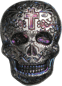 • Vorderseite: Entwurf eines Zuckerschädels, der den Tag der Toten feiert (Dia de Muertos).