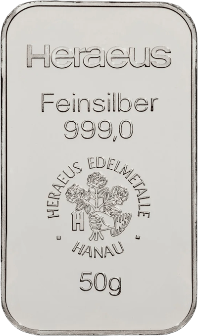 Sichern Sie sich jetzt Ihren 50g Silberbarren von Heraeus und investieren Sie in echte Werte. Made in Germany – für Ihre finanzielle Zukunft.