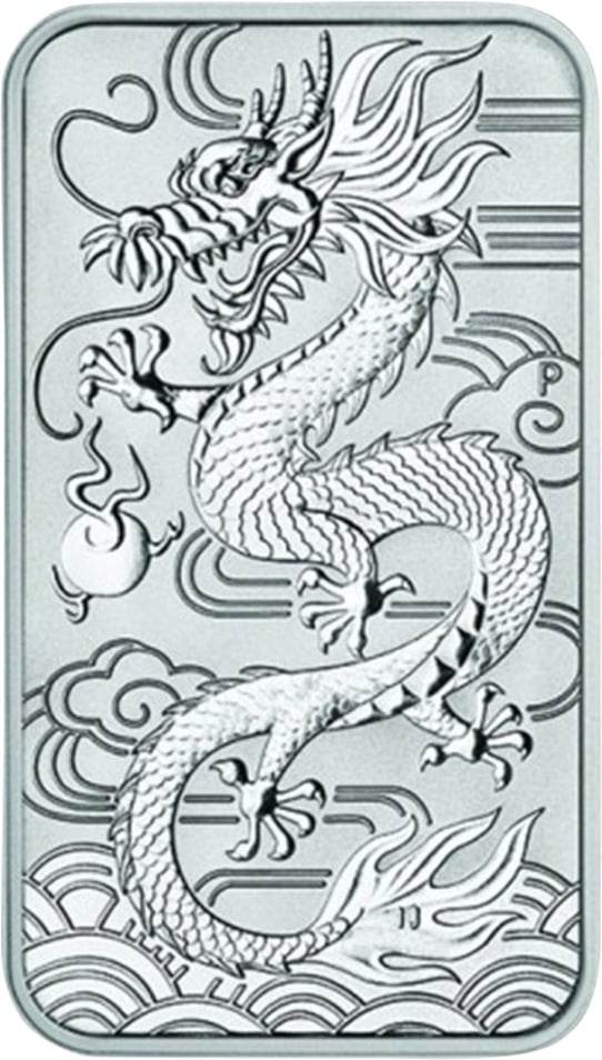 Der Münzbarren besteht aus feinstem Silber mit einer Feinheit von 999,9/1.000 und einem Feingewicht von 31,10 g. Auf der Vorderseite der Münze ist ein majestätischer Drache abgebildet, während die Rückseite das Konterfei von Königin Elizabeth II., das Prägejahr 2018 und den Nennwert von 1 AUD zeigt.