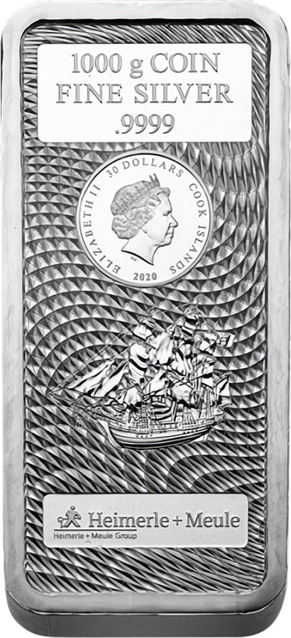 Der 1kg Silber Cook Islands Münzbarren ist ein offizielles Zahlungsmittel der Cook-Inseln mit einem Nennwert von 30 Cook Islands Dollars. Er wurde ursprünglich von der australischen Perth Mint gefertigt, später wurde die Produktion nach Deutschland zu Heimerle und Meule verlegt und seit dem Prägejahr 2014 werden die Münzbarren von Heraeus in Deutschland hergestellt.