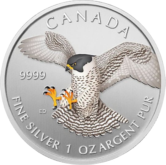 Als erstes Motiv der Birds of Prey Serie 2014 war der Wanderfalke auserwählt worden und startete explosionsartig als absoluter Verkaufsschlager. Der Proof“-Variante für Sammler herausgegeben, deren maximale Auflage sich auf nur 7.500 Stück beläuft. Der Nennwert der Silbermünze liegt bei 5 CAD (kanadische Dollar). Die Lieferung erfolgt in einer Schutzkapsel.