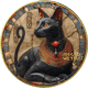 Die Vorderseite der Münze zeigt ein hochdetailliertes Relief der ägyptischen Königin Kleopatra, eingebettet in einen Hintergrund, der an antike Papyri erinnert. Hieroglyphen zieren den Rand und verleihen der Münze ein authentisches Flair. Kleopatra selbst ist in erdigen Farbtönen gehalten, die den historischen Charakter unterstreichen, während die Nemes-Kopfbedeckung und der breite Kragen in lebendigen Farben von Blau, Gold und Rot hervorstechen. Diese Farbdetails harmonieren mit dem veredelten, goldfarbenen Rand, der der Münze eine majestätische Ausstrahlung verleiht.
