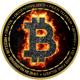 Teilvergoldetes, flammendes Bitcoin-Symbol