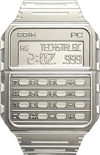 • Motiv: Inspiriert von der ikonischen Databank-Uhr mit einzigartigem Tastatur- und Displaydesign