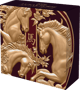 Meisterhafte Black Proof Prägung mit Teilvergoldung: Die kunstvolle Darstellung dreier majestätischer Pferde in Gold und Silber macht jedes Exemplar zu einem einzigartigen numismatischen Kunstwerk