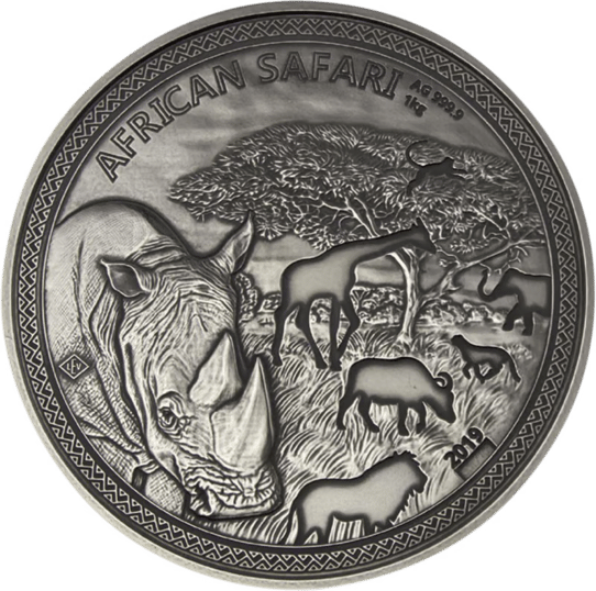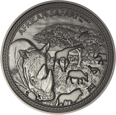 1kg Silber African Safari Nashorn 2019 (Auflage: 100 | Antik Finish | Zertifikat Nr. 100)