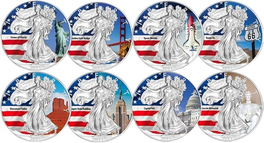 8 x 1 Unze Silber American Eagle Set 2014 (coloriert)