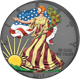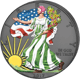 • Motiv: Auf der Vorderseite ist ein fliegender Weißkopfseeadler zu sehen. Auf der Motivseite ist die Göttin - Lady Liberty - ein Symbol der Freiheit zu sehen