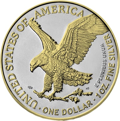 1 Unze Silber American Eagle 2022 (Auflage: 250 | beidseitig teilvergoldet)