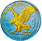 Diese Edition des American Eagle sticht durch einen kolorierten Hintergrund und vergoldete Motive heraus. Die Vorderseite der Silbermünze ist mit einer vergoldeten Darstellung der Freiheitsgöttin Lady Liberty geprägt. Die Lady Liberty erinnert stark an die in New York City stehende Freiheitsstatue. Ein Arm der Göttin ist ausgestreckt, als würde sie auf etwas zeigen wollen. In dem anderen hält sie eine Pflanze. Sie ist in ein Gewand gehüllt, das ihr bis zu den Knöcheln reicht. An dem Gewand ist ein Umhang befestigt, auf dem die Flagge der Vereinigten Staaten zu sehen ist. Die Vorderseite zeigt den Weißkopfseeadler. Auch dieser wurde mit Gold veredelt. Mit seinen Krallen hält er den Zweig eines Baumes fest. Seine Augen sind auf den Boden gerichtet. Entschlossen fliegt er auf etwas zu. Der Adler wird, genauso wie die Lady Liberty, sehr stark mit den Vereinigten Staaten von Amerika assoziiert. Der kolorierte Hintergrund sieht genauso aus wie eine Eisfläche, die an manchen Stellen ein paar Risse aufweist. Als besondere und auf nur 100 Stück limitierte Sonderedition hat diese American Eagle-Münze ein hohes Wertsteigerungspotential.
