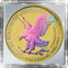 Das Kernstück der Golden Hologram Edition ist das mit Meisterschaft in Hologramm-Technik realisierte Motiv. Die teilvergoldete Münze brilliert durch das dynamische, stetig seine Farbe wechselnde Hologramm des Weißkopfseeadlers. Dieses aussergewöhnliche Design erzeugt eine atemberaubende visuelle Wirkung und macht die Münze zu einem echten Hingucker.