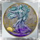 Investieren Sie in diese American Eagle 2023 und profitieren Sie von seinem Wertsteigerungspotenzial. Sein einzigartiges Design mit Hologramm-Motiven, Antik Finish Hintergrund, US-Flagge in Farbe und Vergoldung macht ihn zu einem begehrten Sammlerstück.