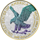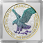 • Motiv: Die Vorderseite zeigt einen majestätischen Weißkopfseeadler, der mit einem Hologrammeffekt bedeckt wurde. Auf der Rückseite ist die Statue of Liberty ebenfalls mit einem Hologrammeffekt hervorgehoben.