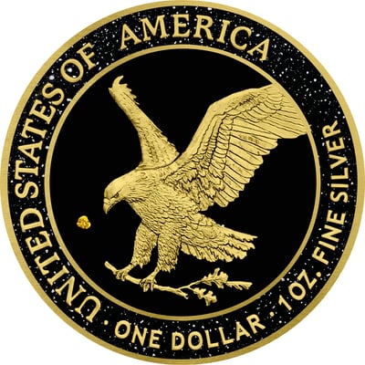 Auf der Vorderseite zeigt die Münze den majestätischen Weißkopfseeadler in teilvergoldeter Ausführung vor einem mit Sternen besetzten Nachthimmel. Die Rückseite präsentiert die Walking Liberty, ein Symbol amerikanischer Freiheit und Unabhängigkeit, ebenfalls kunstvoll teilvergoldet. Die Münze vereint damit Geschichte und moderne Münzkunst auf höchstem Niveau.