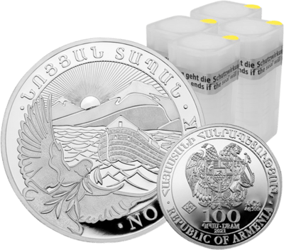 Die insgesamt achtzig Silbermünzen werden in vier Münztuben geliefert, die jeweils mit zwanzig Münzen gefüllt sind. Bei diesen Silbermünzen handelt es sich um Arche Noah-Münzen. Die Arche Noah ist eine armenische Anlagemünze, die von der deutschen Prägestätte Leipziger Edelmetallverarbeitung herausgebracht wird. Die Erstausgabe der Arche Noah erschien im Jahr 2011. Es war eine Silbermünze. Erst Jahre später wurde auch eine Gold-Variante eingeführt. Die Silbermünzen wurden im Jahr 2023 geprägt. Sie haben jeweils eine Feinheit von 999/1.000. Der Nennwert einer einzelnen Silbermünze beträgt 100 Dram. Die Münzen haben jeweils eine Stückelung von ¼ Unze. Die kleinen Stückelungen sind in Krisenzeiten eine echte Hilfe, denn mit ihnen können Sie Einkäufe bezahlen. Auch dann, wenn es sich um geringe Summen handelt. Sie können sich die achtzig Silbermünzen einteilen und die Münzen dann verwenden, wenn Sie sie brauchen. Das Gesamtgewicht der Arche Noah-Münzen beträgt 622 Gramm.