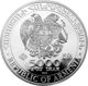 Die Vorderseite der Münze ziert das Staatswappen Armeniens, umgeben von den Inschriften "Republic Of Armenia" in Englisch und Armenisch. Hier wird der Nennwert von 5.000 Dram stolz präsentiert, zusammen mit Angaben zur Reinheit und dem Prägejahr 2024. Der Durchmesser von beeindruckenden 75,50 mm macht die Münze zu einem herausragenden Exemplar in jeder Sammlung.