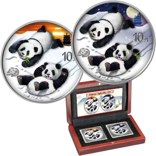 Silber China Panda Tag und Nacht Set 2022 (Auflage: 888 | coloriert)
